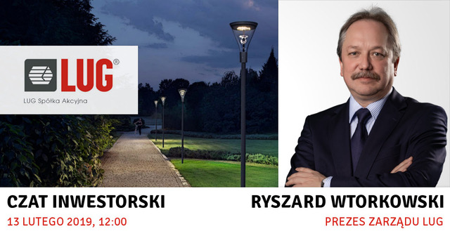 Zapraszamy na czat inwestorski z Prezesem Zarządu LUG, Ryszardem Wtorkowskim, na którym będzie omawiana sytuacja finansowa spółki, podsumowanie roku 2018, efekty działalności fabryki w Argentynie, perspektywy rynku oświetleniowego w 2019 r. oraz realizacja strategicznych kierunków rozwoju LUG.